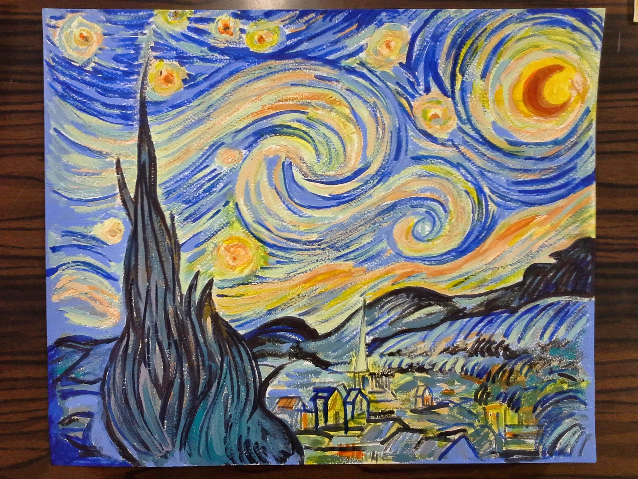 Complimenti ai ragazzi di 3^A per i bei lavori realizzati ispirandosi alle opere dei maestri Van Gogh, Cezanne e Gauguin.